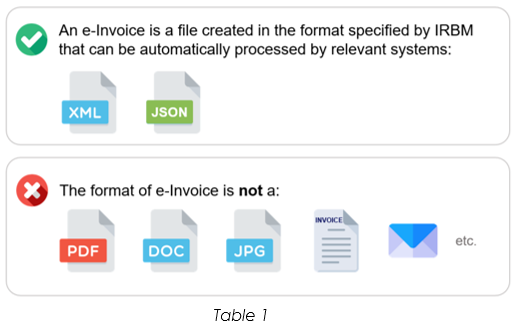 Table 1 illustrates what is considered an e-Invoice and what is not:2