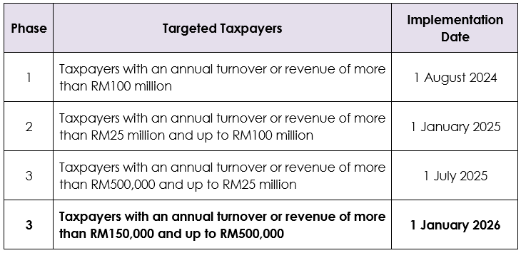 4. LHDN, ‘e-Invoice Implementation Timeline’ (https://www.hasil.gov.my/en/e-invoice/e-invoice-implementation-timeline/).
