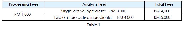 Product registration can only be done via online submission through QUEST at https://www.npra.gov.my/index.php/en/. For first time user, the applicant must register for a membership to get a USB token before the applicant can proceed with the product registration. According to the “Drug Registration Guidance Document (“DRGD”)”1, the processing and analysis fees of a new drug product are as specified. (Table 1)