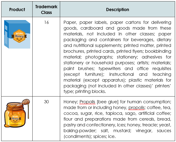 It cannot be debated that in the highly competitive marketplace, SMEs and startups face an unprecedented challenge of gaining goodwill in the consumer market. Trademark registration provides a leeway for businesses to procure brand recognition, product protection against counterfeiting and having a reputable brand identity. Trademark registration is not exclusively towards a business logo, it is also advisable to register trademarks for your product logos, product packaging and the product itself with the correct specifications. Peruse through the illustration below for comprehension of trademark protection for a honey product in the consumer market that is registered with the MyIPO.