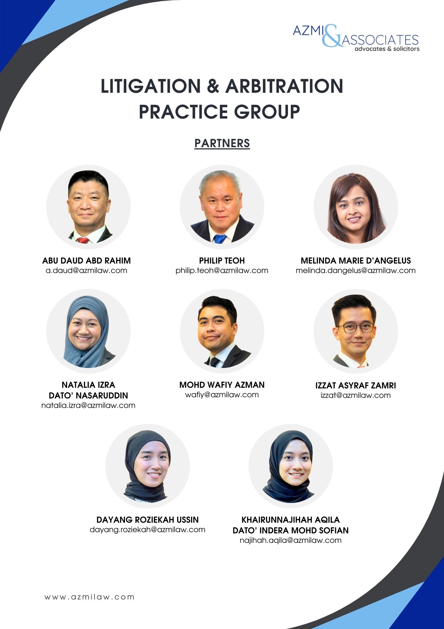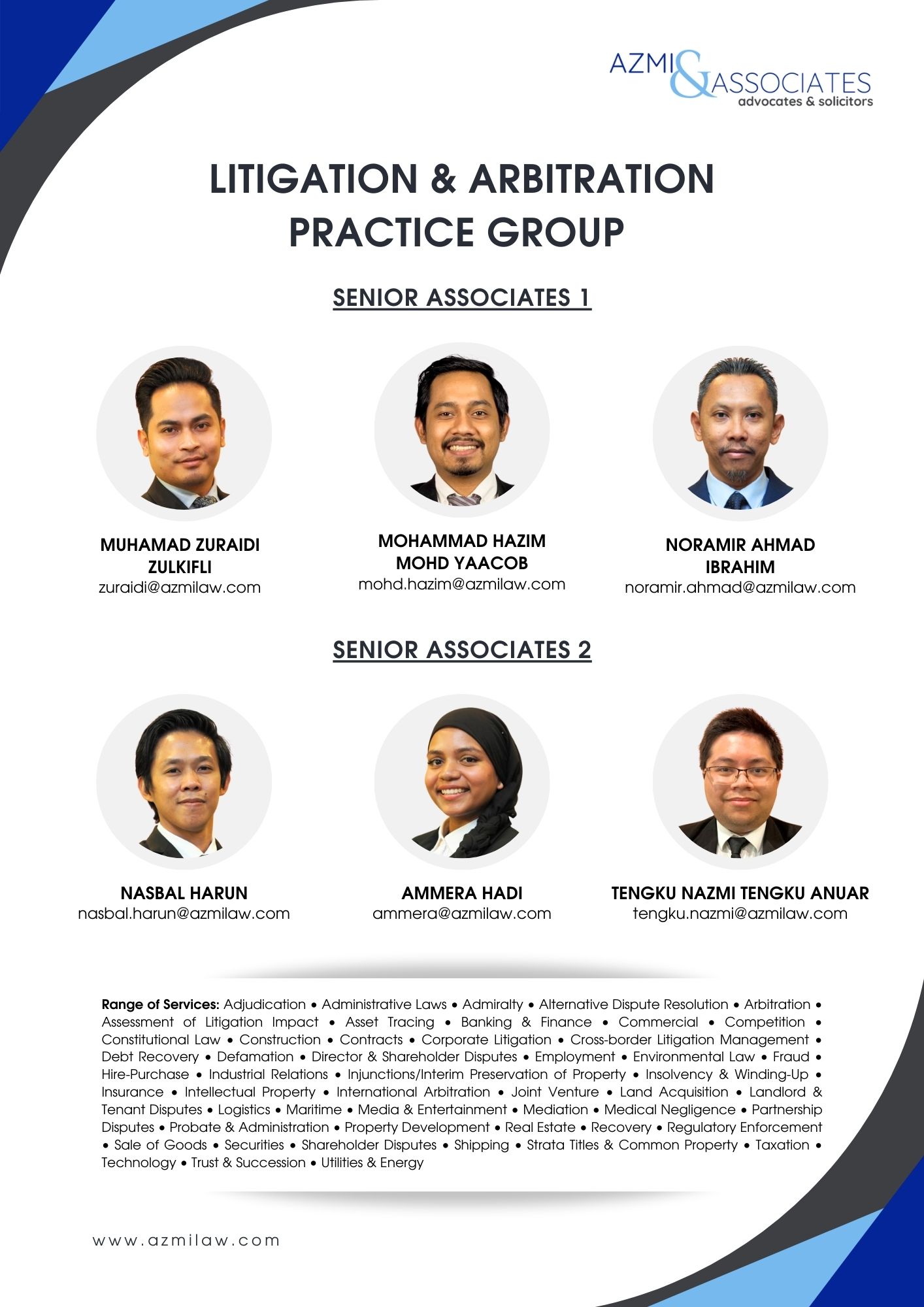 Azmi & Associates is pleased to announce that we have expanded our Litigation & Arbitration team, which now comprises 8 partners, 6 senior associates, 4 managing associates, and 7 associates.