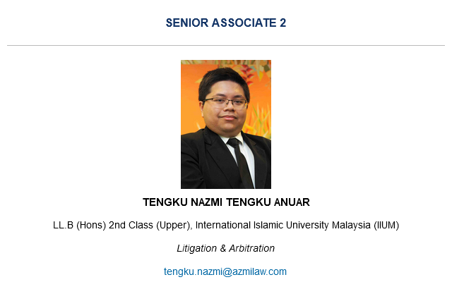 Tengku Nazmi Tengku Anuar has been promoted from Associate to Senior Associate 2.